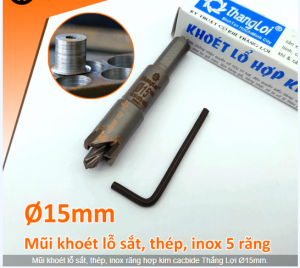 Mũi khoét lỗ sắt, thép, inox răng hợp kim Thắng Lợi Ø15mm